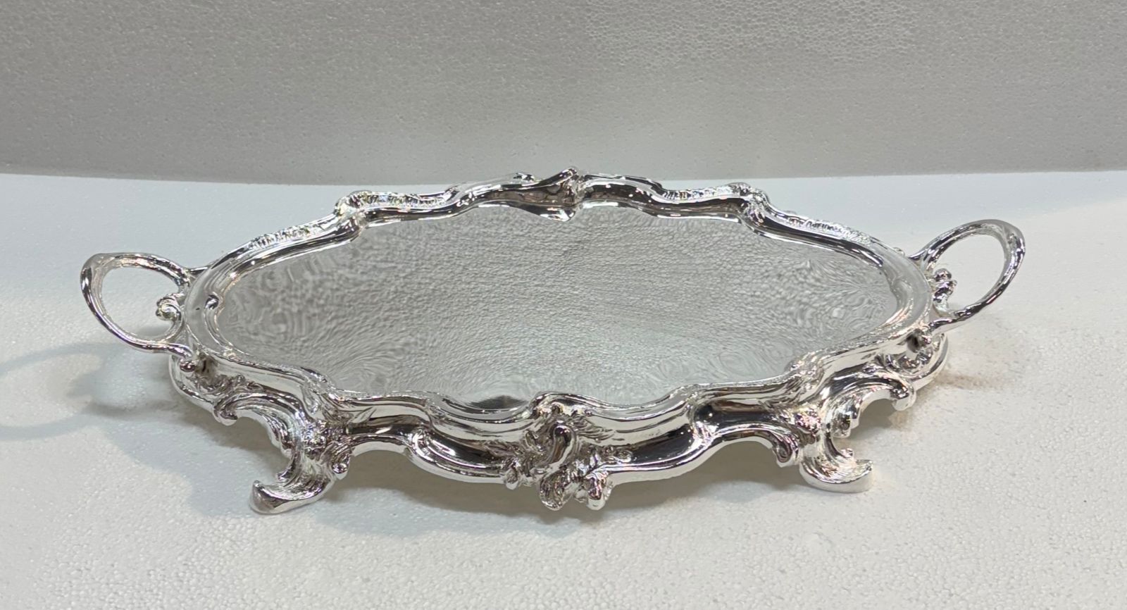 BANDEJA OVALADA PLATEADA BORDE TALLADO